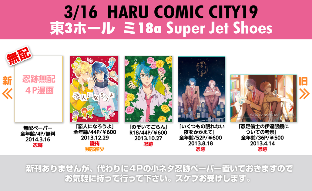 新刊は無いのですが、忍跡4P漫画があると思うので、